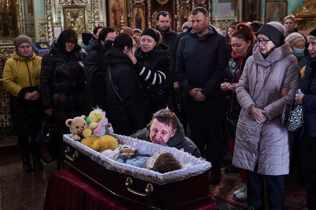 Inside the church, it was one of the hardest moments to photograph. Standing in front of grieving parents never gets easier. The family stood together with candles. I photographed, stepped back, waited. Then the father moved toward the casket of his son, Timofi, three year old.